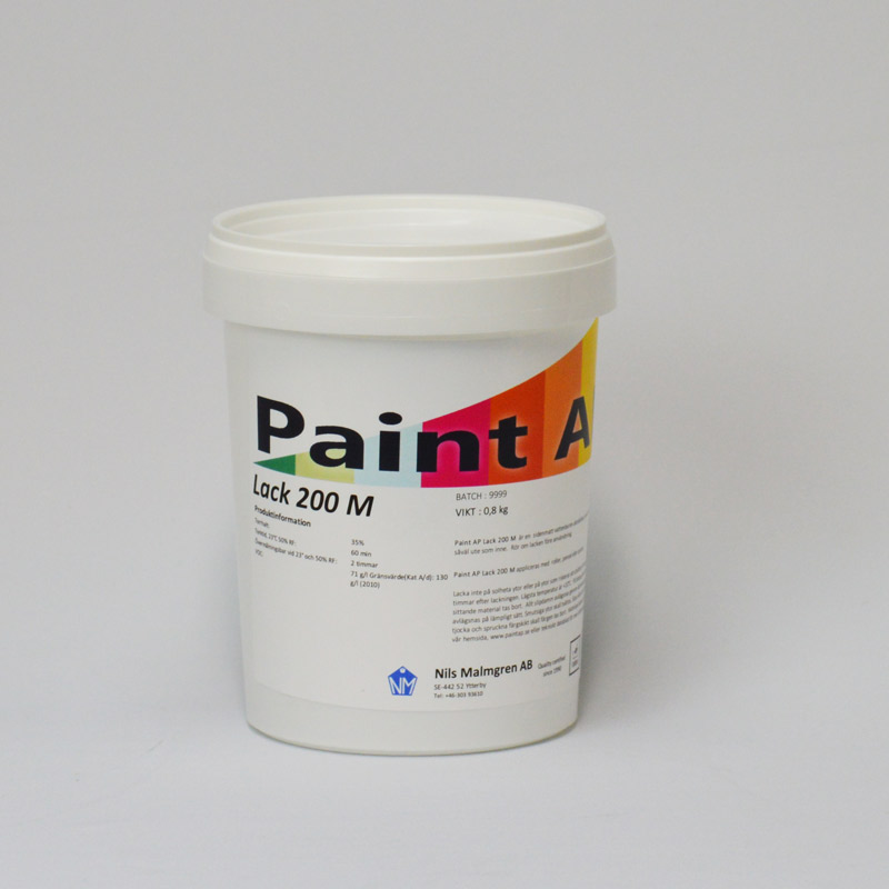 Paint AP Lack 200 M är lätt att påföra och torkar snabbt. Då den är vattenburen är den också skonsam mot miljön. NM Lack 200 M skall röras om väl före användning.